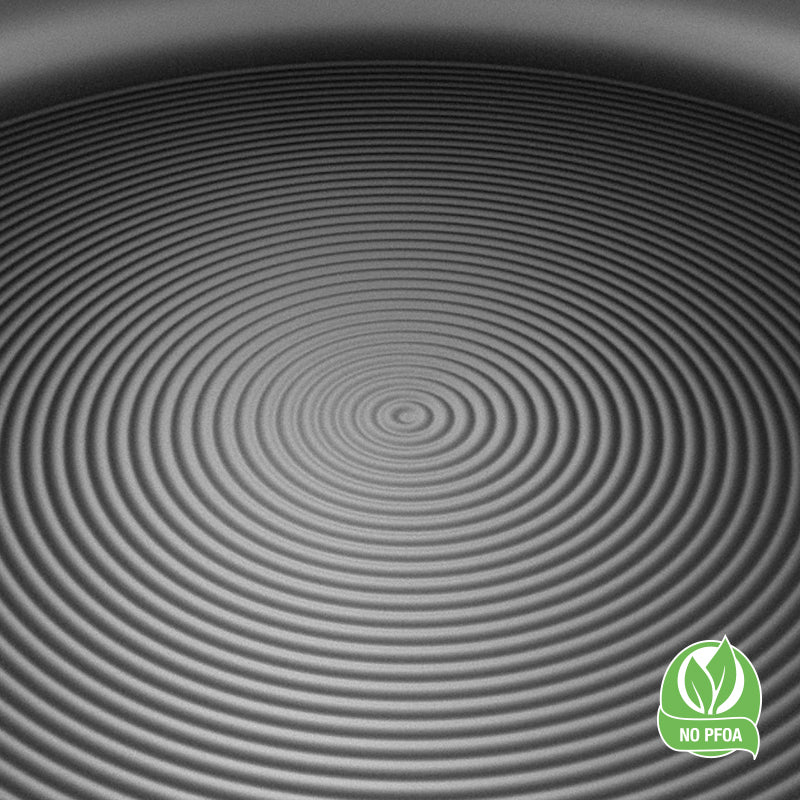 • 鍋内底部獲得專利的高低坑紋圓形設計