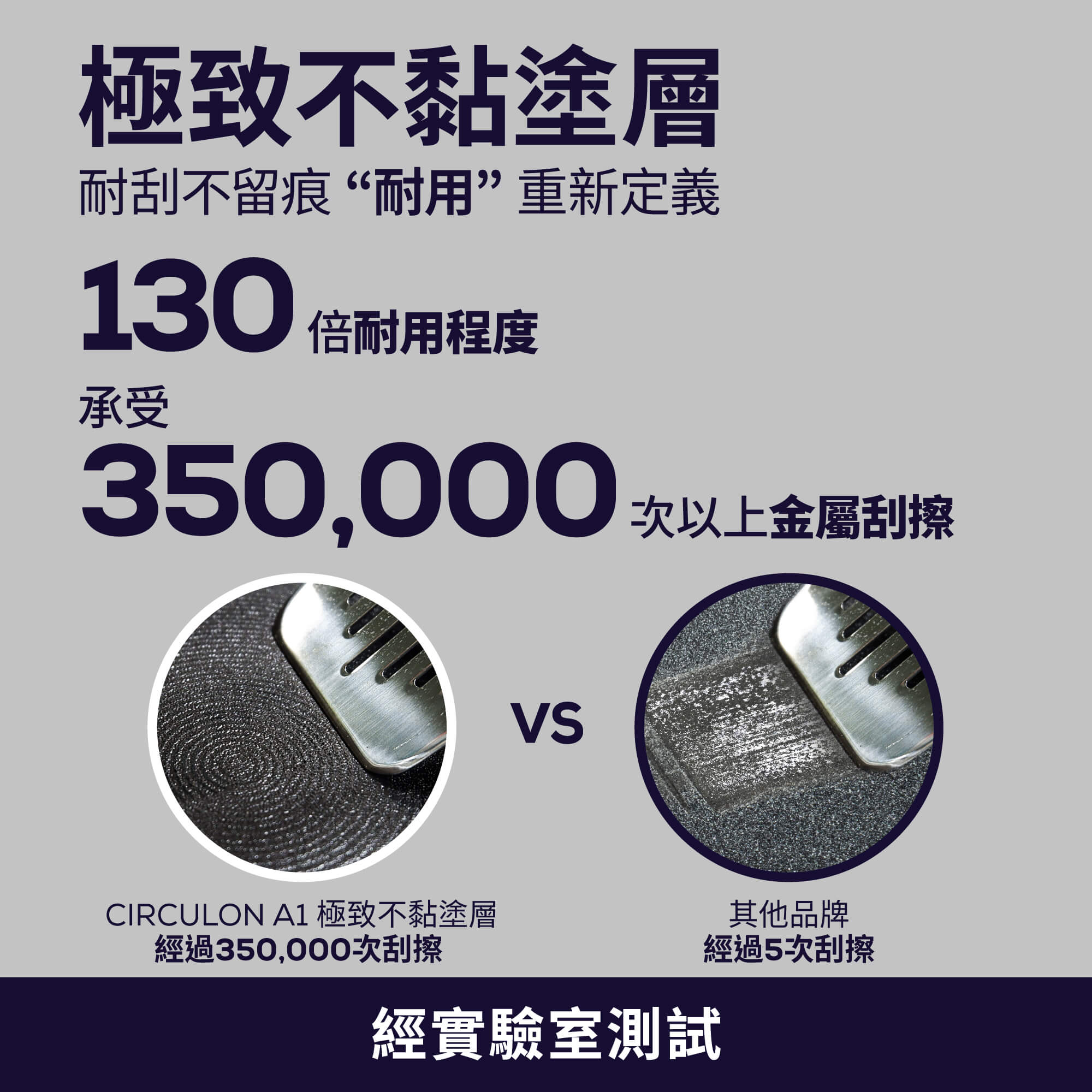 • 金屬烹飪工具適用的防刮不黏鍋内表面